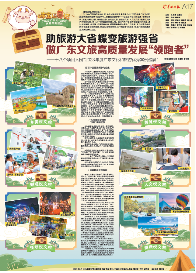 “2023年度广东文化和旅游优异案例巡展”由羊城晚报报业集团主理,,,,,,,旨在为广东建成“旅游业高质量生长树模省”探寻优异案例。。。。。此次巡展运动从3月20日正式果真向全省征集,,,,,,,共收到近百个优异文旅案例,,,,,,,包括广州长隆旅游度假区、正佳广场、广州热雪事业、顺德华侨城欢喜海岸PLUS、江门赤坎华侨古镇、励丰文化、熹乐谷温泉度假区等众多着名文旅企业、项目。。。。。最终,,,,,,,经由近两个月的征集、考察和调研,,,,,,,包括横琴星乐度·露营小镇在内的18个项目正式入围。。。。。