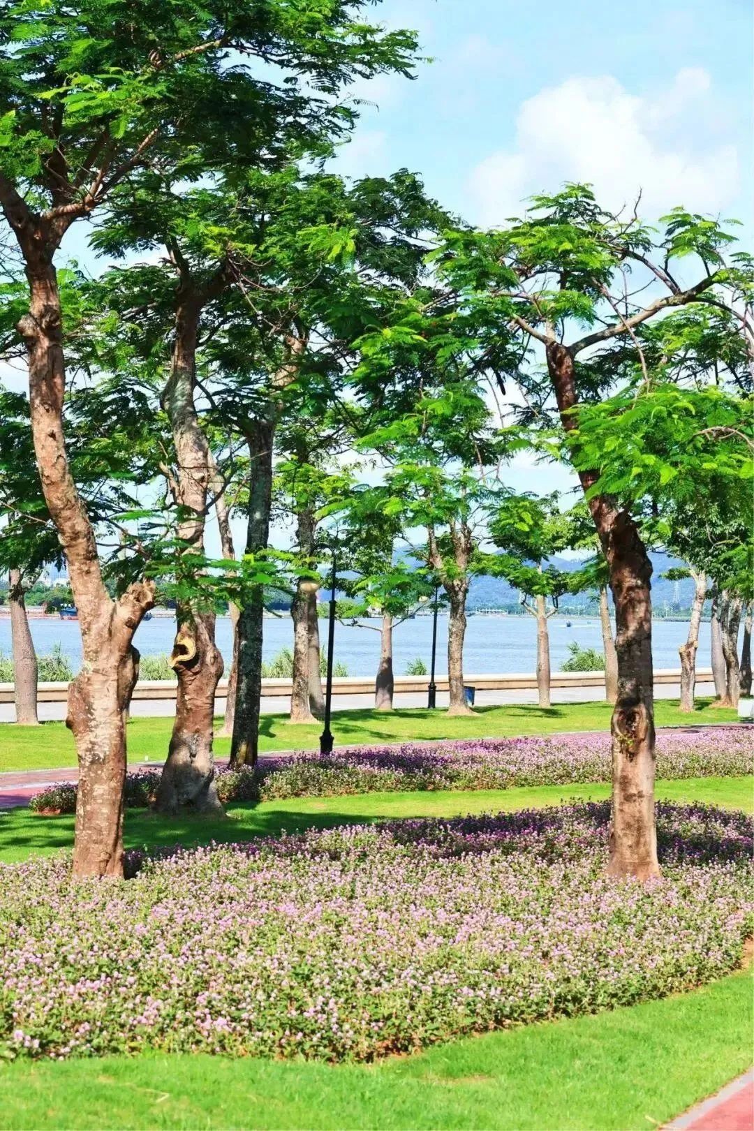 在已往的端午假期,,,,,,,横琴各公园、都会驿站共接待游客逾万人次。。。。。其中,,,,,,,花海长廊郁郁葱葱的青草树林与百花齐放的滨海碧道,,,,,,,都是琴建公司养护职员辛勤的汗水所浇灌出的漂亮效果。。。。。