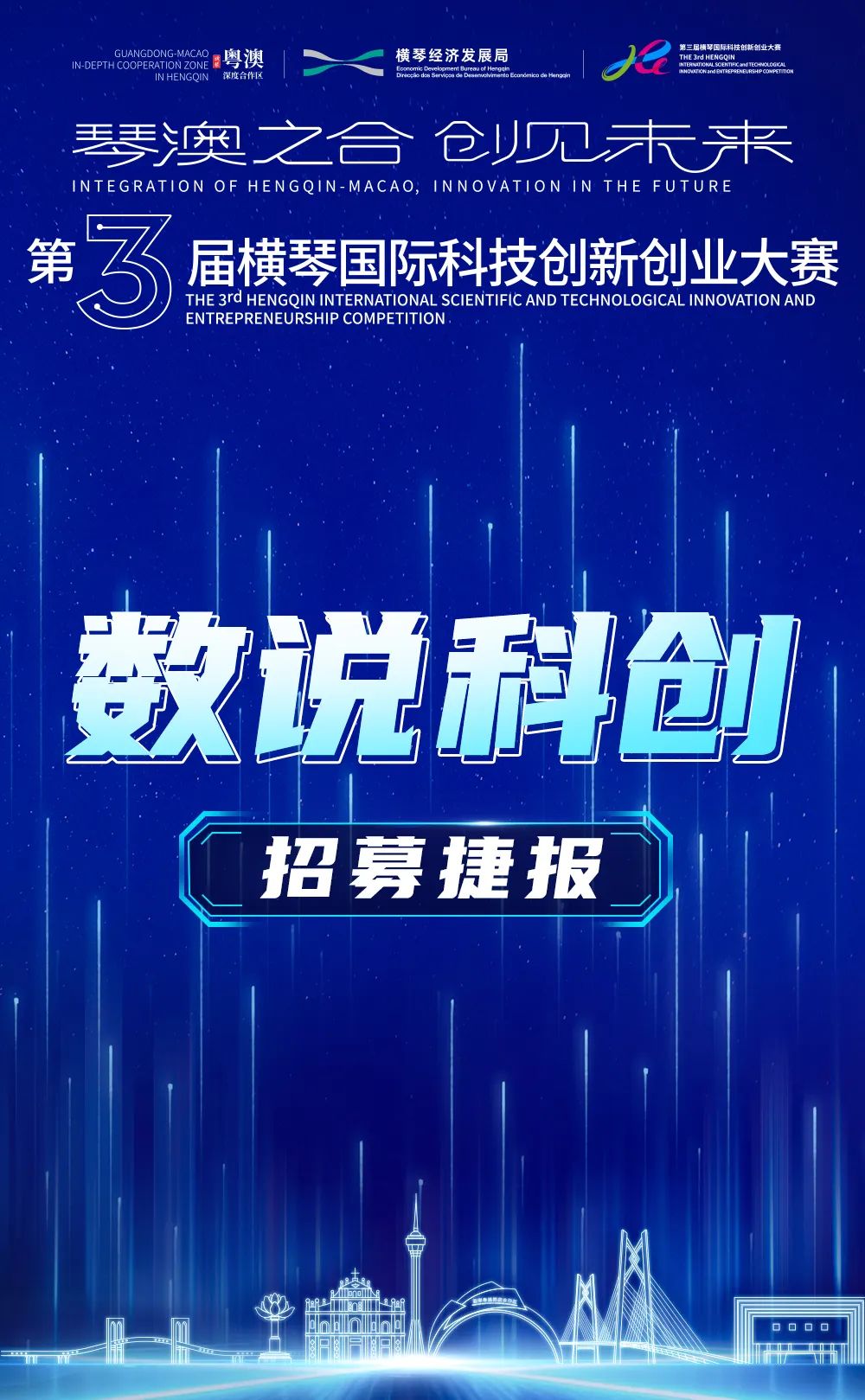 第三届横琴科创大赛招募事情已进入倒计时,,,,,已注册的企业请于7月14日16:00(北京时间)前完成报名资料提交。。。。。。。。无需期待,,,,,掌握最后的时机,,,,,在这个由横琴、澳门携手搭建的舞台上,,,,,勇攀“科创岑岭”,,,,,奔向优美前途!