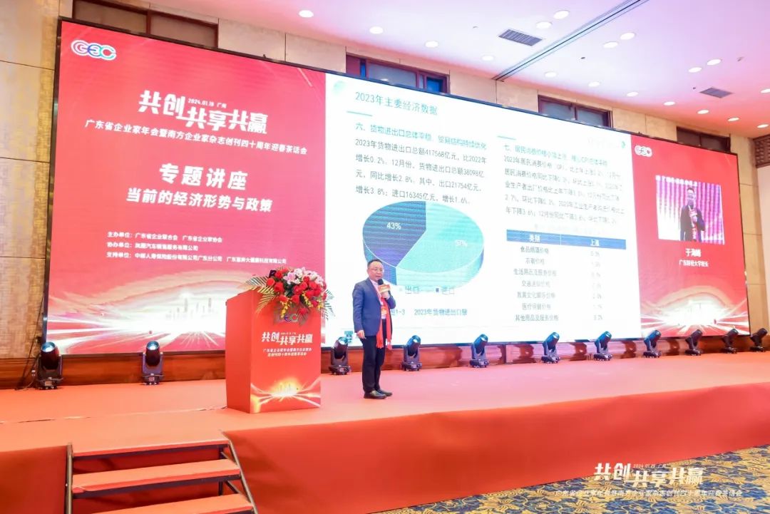 1月19日,,,,, , ,广东省企业家年会暨南方企业家杂志创刊四十周年迎春茶话会在广州盛大拉开帷幕。。。。。本次大会由广东省企业团结会、广东省企业家协会(以下简称省企联)主理,,,,, , ,以“共创 共享 共赢”为主题,,,,, , ,全省各地市企业家代表、全省企联系统和商协会代表,,,,, , ,省企联常务副会长、副会长、理事和会员共500多人欢聚一堂,,,,, , ,共叙友谊、共话生长。。。。。
