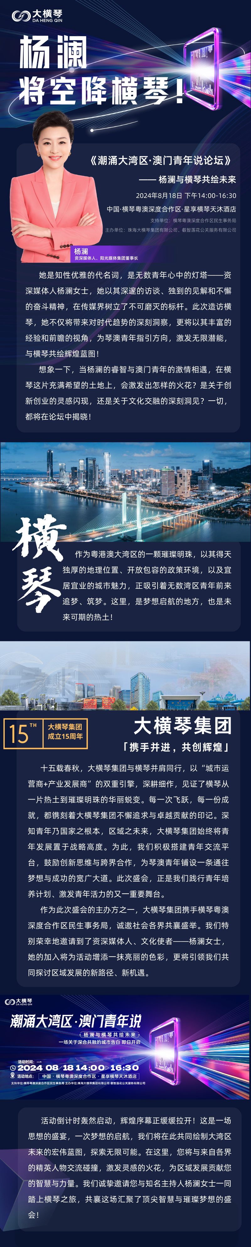 8月18日杨澜将空降横琴,,,,,,,共绘大湾区璀璨未来!