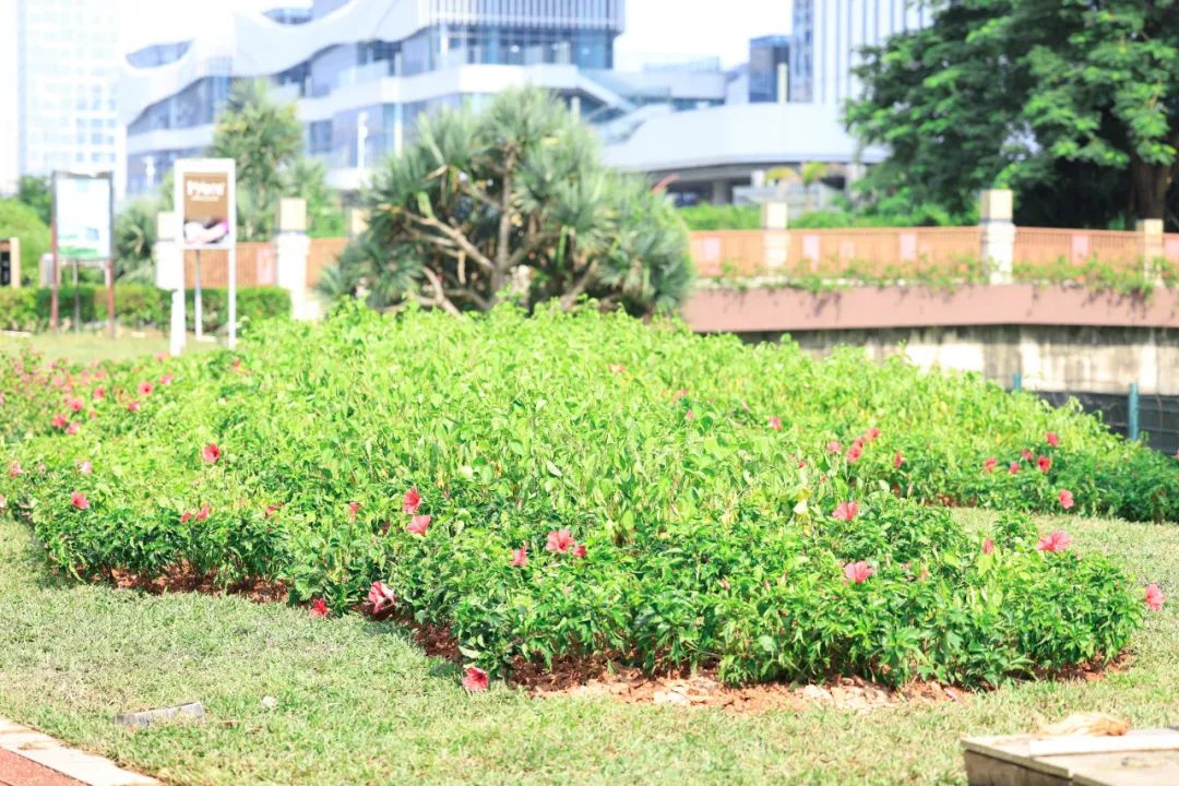 在隆义广场西侧和北侧2处绿地堆造地形并莳植桑贝斯凤仙,,,,,,,,提升园地的景观效果 。。。。。 。。